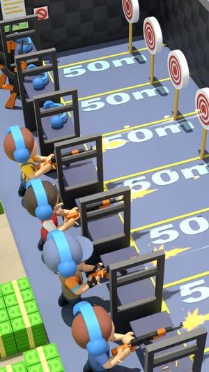 2、通过点击屏幕完成靶场经营操作,滑动控制枪支瞄准,点击射击按钮完成打靶动作。