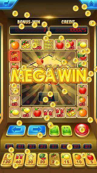 一款九线十五转的街机类手机游戏,该游戏参照连线机的模式,每轮中奖后都有猜大小的游戏。