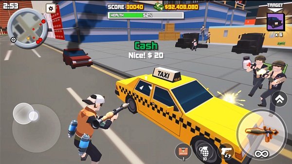 2、像素风格3D世界:独特的低多边形美术设计,将现代都市以方块形式呈现,既保留怀旧感又充满现代气息。建筑细节丰富,可破坏场景增加战术可能。