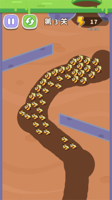 2、用手指绘制保护路径,引导蜜蜂避开危险成功采集花蜜。