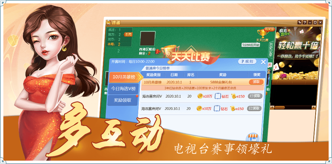 2、比赛:竞技斗地主,完善赛制,公正公平,24小时全天开赛,丰厚奖励等你拿